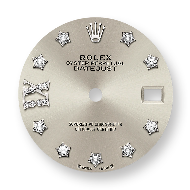 - Dial color: Silver dial with Nine diamonds set in star-shaped framed in 18k White Gold settings and 8 diamonds set in Roman numeral IX framed in 18k White Gold