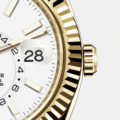 Unworn classic watch Rolex Sky-Dweller 42mm, 18k Yellow Gold, Oysterflex, Ref# 326238-0006 – luxury, elegance and practicality.