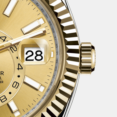- Case material: Yellow Rolesor – combination of Oystersteel and 18k Yellow Gold