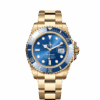 Rolex Submariner Date, 41mm watch of polished 18k Yellow Gold. This model has black dial with a polished 18k Yellow Gold hour, minute and seconds hands in Mercedes-logo and Breguet-style sword shape with luminous fill. Applied polished 18kt Yellow Gold rimmed doty and index hour markers with luminous fill. Fine printed minute/seconds track on the dial rim. Highly legible Chromalight display with long-lasting blue luminescence. Polished 18kt Yellow Gold patented “Triplock” locking crown ensuring that the crown screws down onto the Oyster case as securely as a submarine hatch. The dial closed by a Scratch-resistant Sapphire Crystal and solid case back made. The Watch has Centre hour minute and seconds hands. Stop-seconds for precise time setting. Date window at 3 o’clock with a cyclops magnifier. The watch is equipped unidirectional rotatable polished 18k Yellow Gold bezel with knurled corners for enhanced grip. Black “Cerachrom” bezel insert, made of ceramic which is extremely hard, durable and highly scratch-resistant. Ceramic has excellent corrosion resistant properties and is unaffected by ultraviolet rays so the color will not fade. It features a 60-minute immersion scale engraved in yellow gold with a luminous point at the origin. The movement is mechanical self-winding 3235, containing 31 Jewels and 70 hours of power reserve. The 18k Yellow Gold Rolex Oyster bracelet of brushed outer links and polished center links with folding Oysterlock safety clasp with Rolex Glidelock extension system. The water resistance is up to 300 meters/1000 feet.