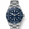 Luxury unworn watch Tudor Black Bay Fifty-Eight, 39mm, Ref# M79030B-0002. The TUDOR model for divers with a sporty yet sophisticated exterior in a bold brushed and polished Stainless Steel version. An incredibly beautiful, well-read multiimpressive domed Blue dial is a feature of this model. It is decorated with luminescent large applied Silver hour markers: round and rectangular at 3, 6 and 9 o’clock, as well as a luminous large triangle at 12 o’clock. On the outer perimeter of the dial, there is a silver minute-second scale. Spectacular completion of an amazing picture – silver arrows with a luminous fill. The hour and second hands feature the distinctive angular tips known to collectors as the “Snowflake”. Complementing all this charm is a Stainless Steel screw-down winding crown, with the TUDOR rose in relief with circular satin-brushed Stainless Steel winding crown tube. The dial closed by a Domed Scratch-resistant Sapphire Crystal. The watch mechanism is sewn up by a solid case back. An elegant feature of the model is a unidirectional rotatable bezel in Stainless Steel with 60-minute graduated disc in matt Blue anodised aluminium and Silver gilded markings and numerals. The model is equipped with a manufacture Tudor Self-winding mechanical movement with bidirectional rotor system, caliber MT5402 (COSC), contains 27 jewels and has an approximate power reserve of 70 hours. This incredibly beautiful timepiece, a masterpiece of the manufacturer, is presented on a Blue “soft touch” leather strap with folding buckle and safety clasp. Water resistant up to 200m/660ft (20 ATM).