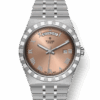 Unworn watch Tudor Royal, polished and satin finish Stainless Steel, 38mm Ref# M28500-0007. Paying tribute to the past, TUDOR looks to the future with enthusiasm, improving its skills and creating new interesting models of its watches. So new for 2023 in the TUDOR Royal line are models with interesting dial options: chocolate brown and salmon. Emphasizing the luxurious style of the watch, the Salmon dial is decorated with sunbeams emanating from the center, creating elegant lighting effects and reflections and applied Silver-tone hour markers with Roman numerals. The stylish Silver-tone hour and minute hands in the form of swords with luminous filling, as well as the elegant thin Silver-tone second hand look spectacular on it. A well-read minute scale is applied along outer contour dial. The functionality of the watch is enhanced by the date display, which is traditionally at the 3 o’clock position. Complementing all this charm is the screw-down 316L Stainless Steel ribbed crown for a comfortable grip, bearing the TUDOR logo. The dial closed by a Scratch-resistant Sapphire Crystal and solid Stainless Steel case back. The characteristic fixed serrated 316L Stainless Steel bezel with alternating polished surfaces and grooves gives the watch a unique personality. The model is equipped with a manufacture Tudor Self-winding mechanical movement Calibre T601, contains 25 jewels and has an approximate power reserve approximately of 38 hours. This spectacular timepiece is presented on an Integrated bracelet in 316L Stainless Steel of five rows, satin-brushed external and central links, polished intermediate links. The Stainless Steel folding clasp and safety catch, made using own unique Tudor technologies, guarantees maximum comfort on the wrist. Water resistant up to 100m/330ft (10 ATM).