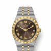 Unworn watch Tudor Royal, polished and satin finish Stainless Steel and 18k Yellow Gold, 28mm Ref# M28303-0008. Paying tribute to the past, TUDOR looks to the future with enthusiasm, improving its skills and creating new interesting models of its watches. So new for 2023 in the TUDOR Royal line are models with interesting dial options: chocolate brown and salmon. Emphasizing the luxurious style of the watch, the Chocolate brown dial is decorated with sunbeams emanating from the center, creating elegant lighting effects and reflections and applied Yellow Gold-tone hour markers with Roman numerals. The stylish Yellow Gold-tone hour and minute hands in the form of swords with luminous filling, as well as the elegant thin Yellow Gold-tone second hand look spectacular on it. A well-read minute scale is applied along outer contour dial. The functionality of the watch is enhanced by the date display, which is traditionally at the 3 o’clock position. Complementing all this charm is the screw-down 18k Yellow Gold ribbed crown for a comfortable grip, bearing the TUDOR logo. The dial closed by a Scratch-resistant Sapphire Crystal and solid Stainless Steel case back. The characteristic fixed serrated 18k Yellow Gold bezel with alternating polished surfaces and grooves gives the watch a unique personality. The model is equipped with a manufacture Tudor Self-winding mechanical movement Calibre T201, contains 25 jewels and has an approximate power reserve approximately of 38 hours. This spectacular timepiece is presented on an Integrated bracelet in 316L Stainless Steel and 18k Yellow Gold of five rows, satin-brushed external and central links, polished intermediate links. The Stainless Steel folding clasp and safety catch, made using own unique Tudor technologies, guarantees maximum comfort on the wrist. Water resistant up to 100m/330ft (10 ATM).