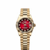 Introducing unworn classic Rolex Datejust 31 watch, Reference 278288rbr-0041 a masterful blend of elegance and precision, showcasing Rolex’s commitment to timeless design and exceptional craftsmanship. Crafted from 18k Yellow Gold, the 31mm Oyster case exudes a warm, luxurious glow. This iconic model has red ombré dial, transitioning from a vibrant center to a deep black edge, is set with diamonds, creating a captivating visual effect. This design pays homage to a style Rolex introduced in the 1980s and reintroduced in 2019, involving a delicate application of black lacquer to achieve the gradient effect. At the heart of its design, the dial proudly displays an applied 18k Yellow Gold Rolex Crown at 12 o’clock, accompanied by traditionally polished 18k Yellow Gold hands that glide with effortless precision. The iconic Cyclops lens, ensuring superior readability, magnifies the signature date window at 3 o’clock.
