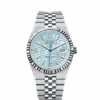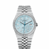 Unworn 2025, Rolex Land-Dweller 36, Platinum, Ice blue dial, Fluted Flat Jubilee, Ref# 127236-0001, box and papers