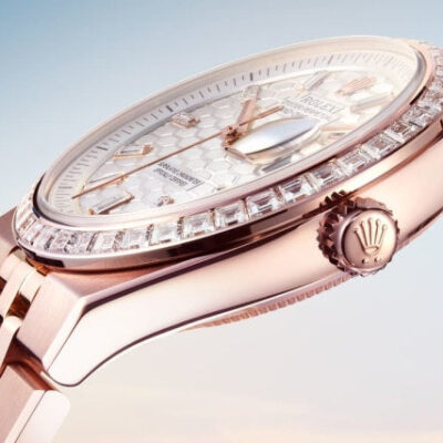 Introducing unworn Rolex Oyster Perpetual Land-Dweller 40, reference 127385tbr-0003—a bold addition to Rolex’s lineup, unveiled at Watches & Wonders 2025. This model seamlessly blends classic design elements with cutting-edge technology, offering a timepiece that is both elegant and robust. The 40mm Oyster case crafted from 18k Everose Gold —a signature Rolex design element. The intense white dial showcases a unique honeycomb motif, achieved through advanced femtosecond laser technology, adding depth and texture. He is adorned with Chromalight display, providing long-lasting blue luminescence for optimal legibility in low-light conditions. Luxurious 10 baguette-cut diamonds as hour markers and specially developed luminescent hands contribute to the watch’s contemporary aesthetics and are covered by scratch-resistant sapphire crystal. The traditionally positioned date indicator at 3 o’clock with Cyclops lens and the classic minute track surrounding the dial enhance functionality. Crafted for reliability in any environment, the watch features a robust screw-down crown equipped with Rolex’s Twinlock double waterproofness system. This ingenious construction combines two sealed zones—one inside the crown tube and one inside the crown itself—ensuring airtight protection against water infiltration. The flawless bezel of this watch, expertly set with 40 baguette-cut set diamonds, is a testament to the harmonious fusion of craftsmanship and art. Surgically crafted, each precious diamond is set with unwavering precision in a specially prepared bezel housing. The uniform height and flawless alignment of each stone to precise symmetry are a reflection of Rolex’s uncompromising standards. At the heart of the Land-Dweller 40 lies, the newly developed Rolex Calibre 7135 contains 39 jewels. This self-winding mechanical movement operates at a high frequency of 5Hz (36,000 beats per hour) and boasts a power reserve of approximately 66 hours. The movement features the innovative Dynapulse escapement, constructed from silicon, enhancing efficiency and resistance to magnetic fields. Visible through a transparent sapphire case back—a first for Rolex—the movement also includes a Syloxi hairspring, ceramic balance staff, and Paraflex shock absorbers, ensuring precision and durability. The watch is fitted with a newly designed integrated Flat Jubilee bracelet, comprising five-piece solid links in 18k Everose Gold. The bracelet features polished center links and satin-finished outer links with polished edges, providing both comfort and a refined appearance. A concealed 18k Everose Gold folding Crownclasp ensures a seamless look and secure fit. Whether in daily wear or conditions that are more demanding, the Twinlock system delivers exceptional resistance and durability, preserving the integrity of the timepiece to a depth of up to 100m/330ft (10 ATM).