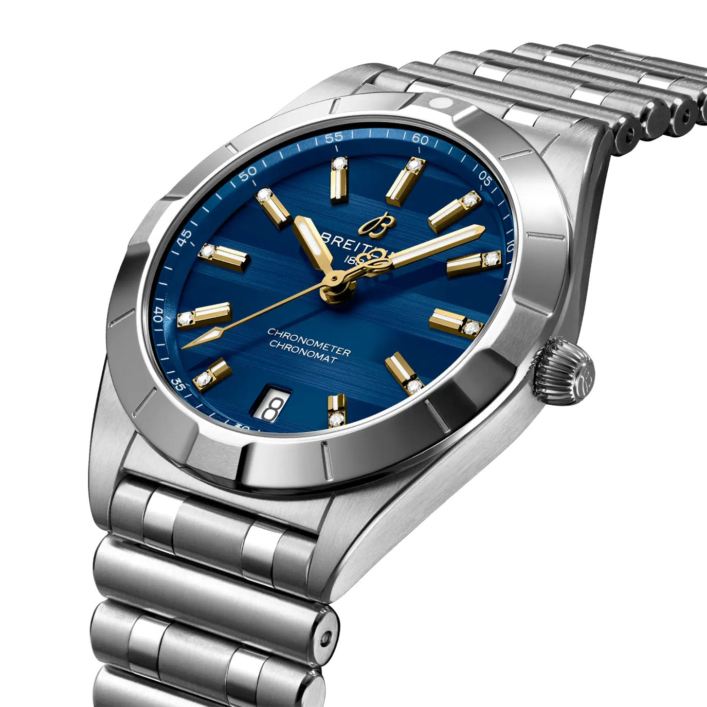 The Breitling Chronomat 32 Six Nations Scotland is a sophisticated timepiece that blends contemporary precision with timeless elegance. With its compact 32 mm stainless steel case and polished metal bracelet, this watch offers a sleek profile ideal for both casual and formal wear. Powering the Chronomat 32 is the Breitling Caliber 77, a COSC-certified SuperQuartz™ movement known for its remarkable accuracy—ten times more precise than standard quartz. The thermocompensated electronic movement also features an end-of-life (EOL) indicator and a practical date aperture. The watch’s durability is reinforced with a screwed-in caseback, 100 m water resistance, and a cambered sapphire crystal glareproofed on both sides. Light on the wrist but rich in craftsmanship, it’s a reliable and stylish choice for everyday luxury.
