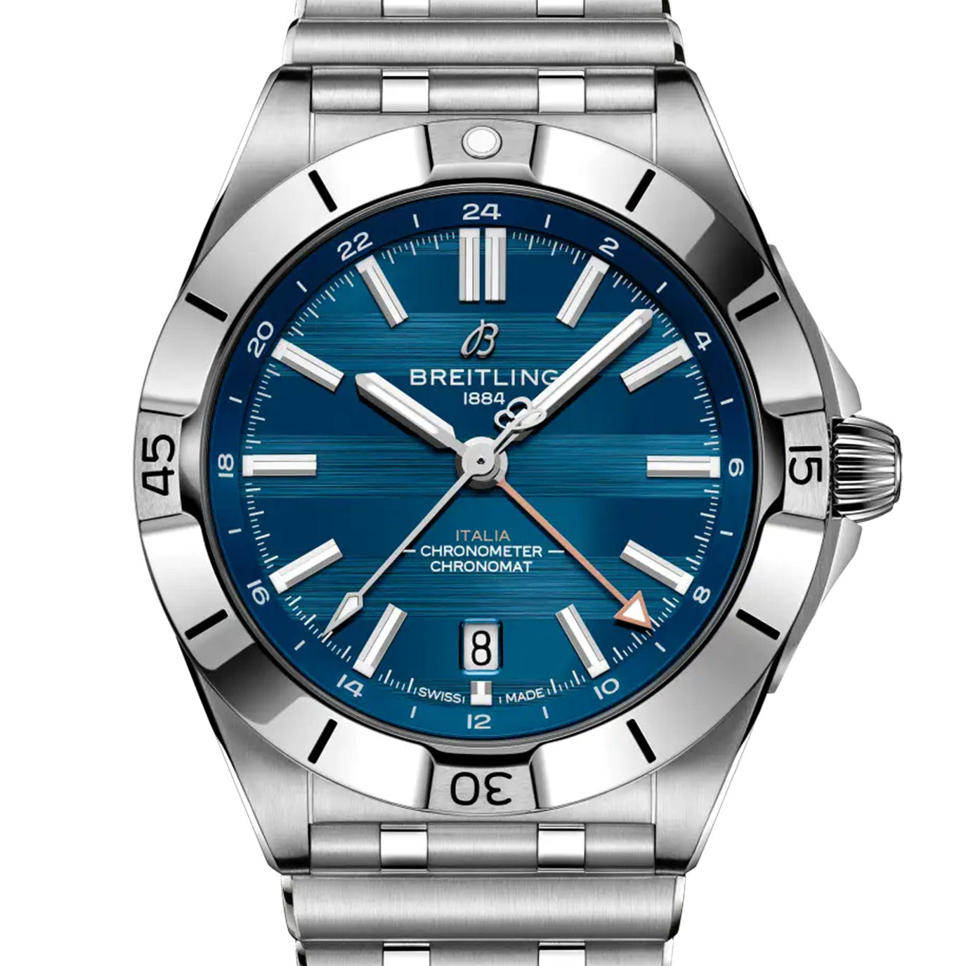 The Breitling Chronomat Automatic GMT 40 Six Nations Italy is the ultimate travel companion, combining dive-watch robustness with dual-time functionality. Crafted in stainless steel, the 40 mm case is fitted with a unidirectional ratcheted bezel and a screw-locked crown, ensuring water resistance up to 200 meters. Its clean dial layout features a second time zone via a 24-hour hand, making it ideal for adventurers and jetsetters. At its core is the COSC-certified Breitling Caliber 32, a self-winding mechanical movement offering a 42-hour power reserve and exceptional reliability. The cambered sapphire crystal with anti-reflective treatment and the solid stainless steel bracelet complete the look of this sporty yet refined tool watch, perfect for daily wear or distant journeys.