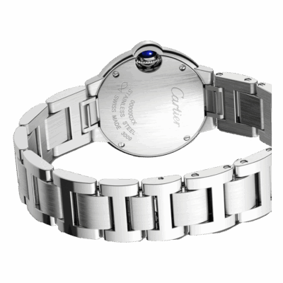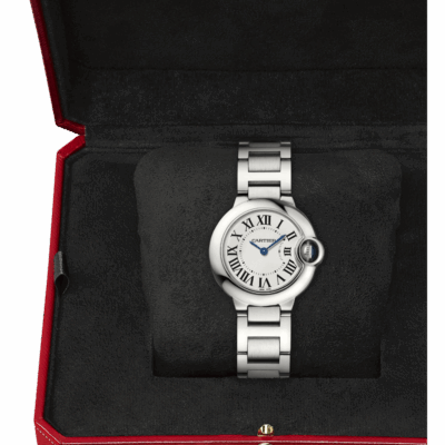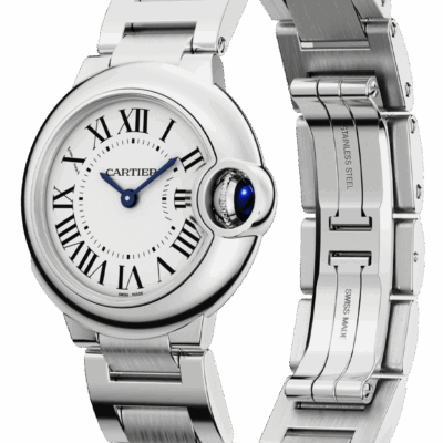 Introducing the Cartier Ballon Bleu de Cartier WSBB0067 is a refined 28mm timepiece that seamlessly blends Cartier’s timeless elegance with modern functionality. Constructed from Stainless Steel, this watch features a silvered opaline dial features bold Black printed Roman numeral hour markers, radiating from the signature crown curve—creating a striking visual rhythm and blued steel sword-shaped hands ensure both classic appeal and legibility. In the center of the dial is an exquisite minute track, where a distinct square indicator marks each five-minute increment. This thoughtful layout offers a modern twist on traditional timekeeping, combining clarity with character. A special highlight is the bold smooth fixed Stainless Steel bezel, a signature Santos aesthetic. The fluted Stainless Steel crown is set with a synthetic cabochon-shaped spinel, a signature element of the Ballon Bleu collection. Powered by Cartier’s in-house Quartz movement, the watch ensures reliable timekeeping. With a dial protected by scratch-resistant sapphire crystal, a case thickness of 9.14 mm and water resistance up to 30 meters (3 bar), they certainly combine elegance with practicality.. The interchangeable Stainless Steel bracelet, offers versatility to suit various occasions. Whether paired with formal attire or casual ensembles, the Cartier Ballon Bleu de Cartier WSBB0067 exudes sophistication and charm.