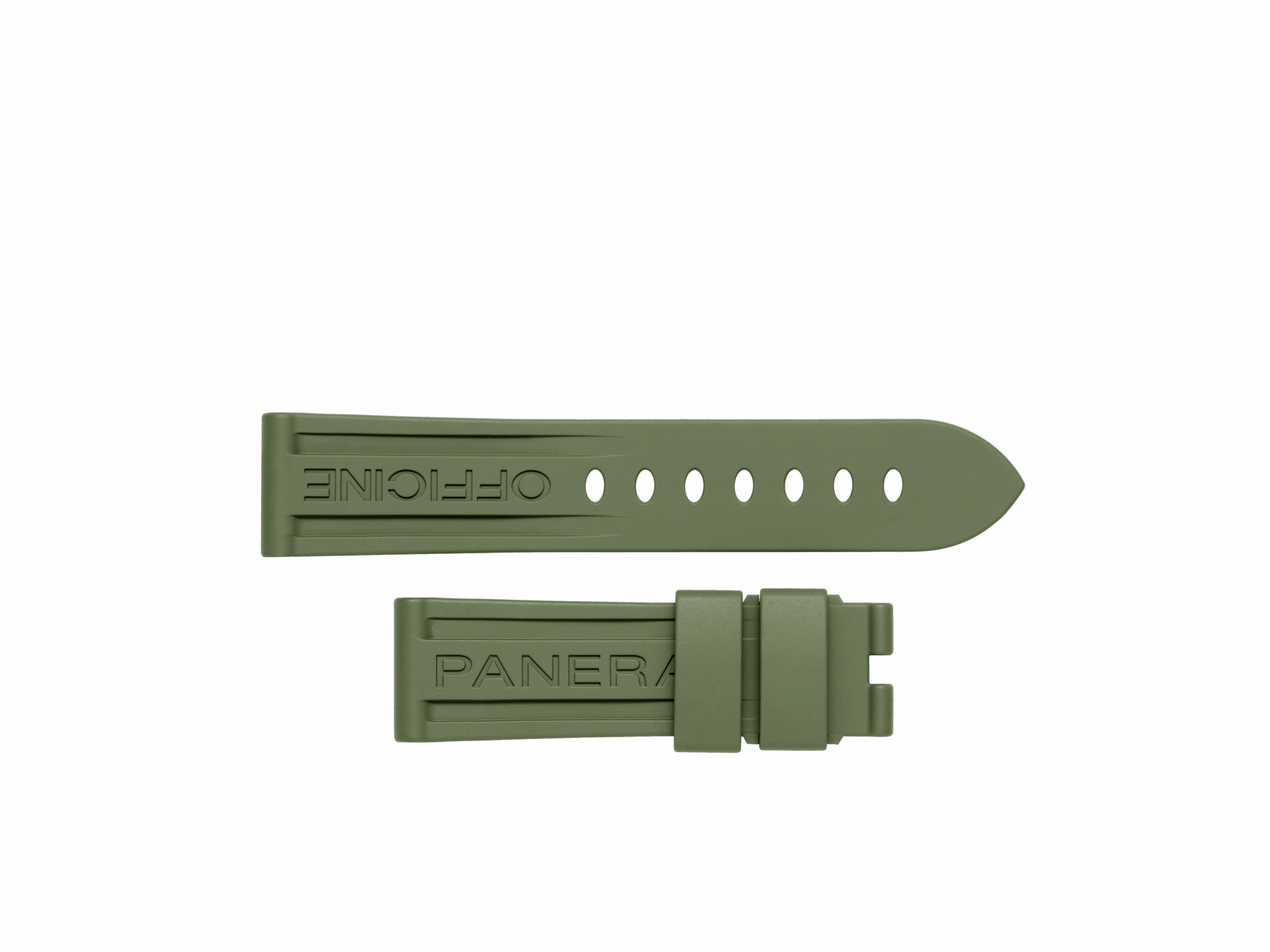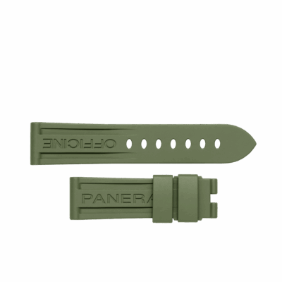 Introducing unworn Panerai Luminor Marina Titanio, Mens Watch, Ref# PAM03325, an exquisite blend of luxury and functionality. Housed in a 44mm brushed silver-tone titanium case, this model is complemented by a Dark green calf, ecru stitching strap, offering both elegance and comfort. Secondary included Green Rubber Strap. A polished silver-tone titanium fixed bezel elegantly frames the bold and functional design of this timepiece, drawing attention to its striking Green sun-brushed dial. The dial is adorned with Arabic numerals and hour markers, all treated with Super-LumiNova® X2—a cutting-edge luminescent material that delivers enhanced brightness and visibility. Arabic numerals at 6, 9 and 12 ensure effortless readability, while a date display at the 3 o’clock position adds practicality to its design. A subdial at 9 o’clock elegantly tracks the small seconds, further enhancing the watch’s functional appeal. P.980 automatic mechanical calibre, a finely engineered movement composed of 177 components and 23 jewels, operating at a high frequency of 28,800 alternations per hour. Designed for precision and durability, it features the reliable Incabloc® anti-shock system, offering enhanced resistance to impact. A three-day power reserve, driven by a single barrel, ensures consistent performance over extended periods—delivering a seamless blend of technical mastery and enduring reliability. A scratch-resistant sapphire crystal, offering uncompromising clarity and durability on the dial side, safeguards this exceptional timepiece. On the reverse, a screwed, see-through caseback crafted from sapphire crystal and stainless steel reveals the intricate mechanics within—inviting a glimpse into the watch’s finely tuned movement while ensuring robust protection. It’s a perfect fusion of transparency and toughness, designed for those who appreciate both form and function. The Panerai patented crown protector ensures secure operation. The new Luminor Marina Titanio emerges as a bold evolution of a legend, introducing key upgrades that elevate its performance, durability, and wearability—all while staying true to its unmistakable identity. This latest chapter in the Luminor story sets a new benchmark in water resistance, now rated at 50 BAR (~500 meters), reinforcing its role as a true tool watch for serious underwater exploration.